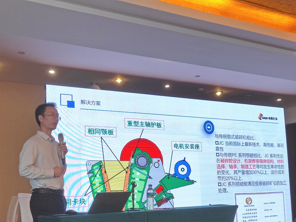 會上,南昌礦機(jī)研發(fā)中心總監(jiān)詹春生發(fā)表了題為《大型化短流程碎礦工藝技術(shù)》的演講。演講提到,隨著礦石的持續(xù)開采,品位越來越低,人工成本越來越高,為降低能耗,減少運營成本,維持盈利,市場對于性能穩(wěn)定、操作簡單、維護(hù)方便的大型化、大破碎比、智能化裝備的需求越來越明顯。在打造綠色礦山、智能礦山的大趨勢下,要實現(xiàn)節(jié)能環(huán)保高效,優(yōu)化流程是關(guān)鍵。南昌礦機(jī)使用先進(jìn)流程軟件設(shè)計出的流程精準(zhǔn)、快捷,搭配上南昌礦機(jī)擁有大破碎比、高篩分效率、高處理量特點的大型化裝備,可實現(xiàn)短流程優(yōu)化的目的。