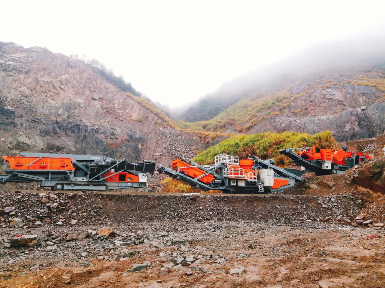 南方新材料有限公司骨料生產(chǎn)線項(xiàng)目位于江西省撫州市東鄉(xiāng)區(qū),南昌礦機(jī)生產(chǎn)的MT1150JC移動(dòng)顎式破碎站、MT300CC移動(dòng)圓錐破碎站和MT1860SR移動(dòng)篩分站應(yīng)用于該項(xiàng)目,設(shè)備在現(xiàn)場作業(yè)中不僅可以加工灰?guī)r等高硬度物料,破碎率高,破碎比大,而且可隨開采面的不斷推進(jìn)而移動(dòng),不必通過汽車、輸送機(jī)等將物料搬離現(xiàn)場再進(jìn)行物料的破碎加工作業(yè),可大大節(jié)省物料的運(yùn)輸成本與時(shí)間,具有強(qiáng)度高、性能優(yōu)、結(jié)構(gòu)緊湊、維修方便的特點(diǎn)。
