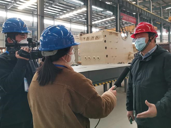 作為南昌市重點企業(yè),南昌礦機(jī)復(fù)工復(fù)產(chǎn)情況也得到當(dāng)?shù)卣块T的高度重視。2月18日,南昌市灣里區(qū)廣播電視臺專程來到南昌礦機(jī)一線生產(chǎn)車間進(jìn)行報道,并對南昌礦機(jī)總經(jīng)理龔友良先生進(jìn)行了專訪。龔友良總經(jīng)理表示:南昌礦機(jī)一手抓防控,一手抓復(fù)工,在嚴(yán)格履行企業(yè)責(zé)任與擔(dān)當(dāng)、有效落實防控舉措的基礎(chǔ)上,有力有序推進(jìn)復(fù)工復(fù)產(chǎn),確??挂咔楸Ia(chǎn)兩不誤。