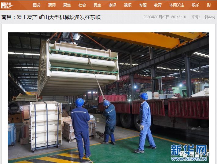 2020年2月27日,新華社記者到訪南昌礦山機械有限公司(以下簡稱“南昌礦機”),并對其通過“抗疫”與“生產(chǎn)”兩手抓,從而快速實現(xiàn)首批海外訂單交付做了報道。南昌礦機生產(chǎn)的3臺ZKR直線振動篩及1臺BS系列香蕉篩,已于當(dāng)日通過生產(chǎn)技術(shù)及質(zhì)檢部門對設(shè)備出廠前的認(rèn)真仔細(xì)檢查工作,并順利完成裝車,啟程發(fā)往塞爾維亞交付客戶。