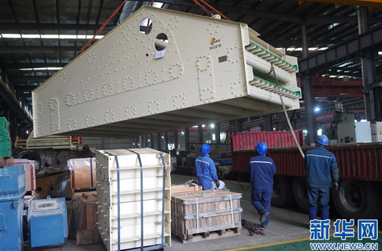 2月27日,工作人員將出口的篩分機設(shè)備裝車。當(dāng)日,江西南昌礦山機械公司生產(chǎn)的4臺礦山篩分機設(shè)備啟程發(fā)往塞爾維亞,這是自新冠肺炎疫情發(fā)生以來,該公司生產(chǎn)交付的首批海外訂單。