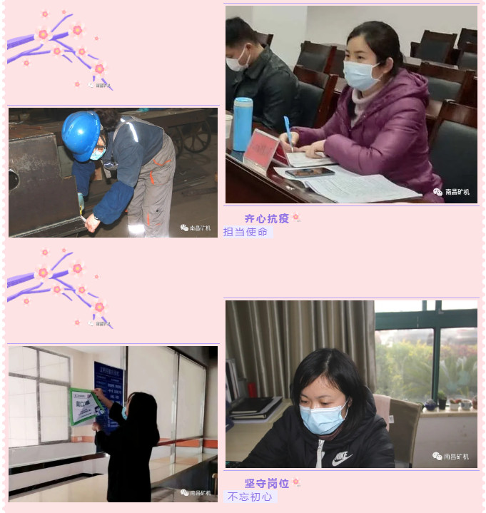值此“三八”婦女節(jié)來臨之際,南昌礦機(jī)祝廣大女神們節(jié)日快樂!在疫情中擔(dān)當(dāng)使命,在崗位中不忘初心,為“早日全面步入正常軌道”而繼續(xù)奮戰(zhàn)!