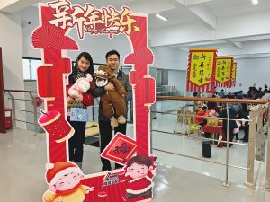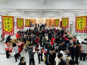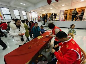 集市現(xiàn)場遍布中國紅,濃濃的年味撲面而來?!跋灿T”攤位前,書法老師現(xiàn)場揮毫潑墨,一副副飽含祝福與喜慶的對聯(lián)躍然紙上,一個個金色的“福”字充滿美好的寓意,大家領(lǐng)到了自己中意的春聯(lián),喜笑顏開;“飾飾如意”、“欣欣向絨”攤位備受喜愛,大家對精心準(zhǔn)備的禮品愛不釋手;“吃貨”們則被“幸福味道”攤位吸引,極具江西特色的特產(chǎn)小吃極受歡迎;“編福送財”攤位上,南礦才華滿溢的員工正根據(jù)需求飛快編織手工藝品;“快樂套圈圈”、“拾光”、“福滿窗”等攤位也人氣十足,在歡快的歌聲中,四處洋溢著歡樂和喜悅,其樂融融。