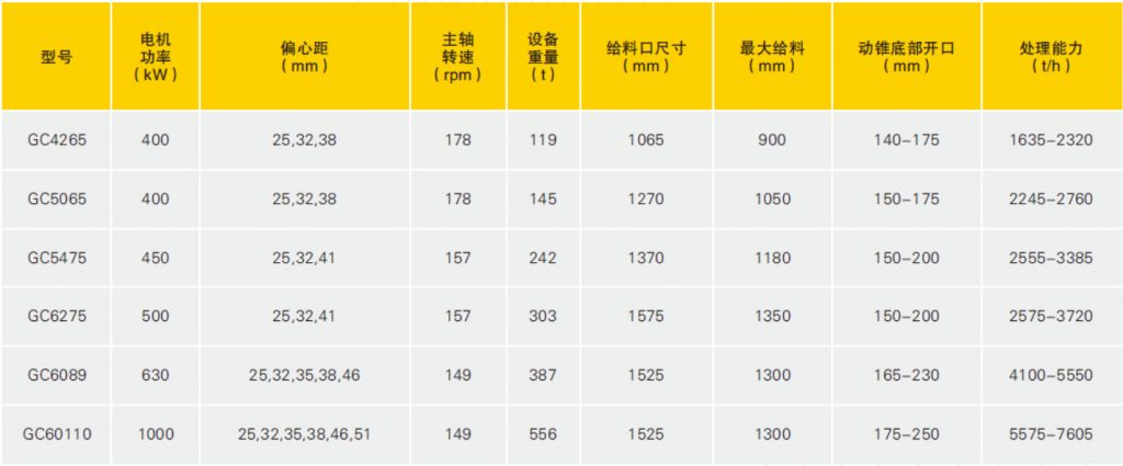 GC4265旋回破碎機(jī)松邊排礦口為150mm,破碎軟巖時(shí),150mm產(chǎn)品通過(guò)率為90%。