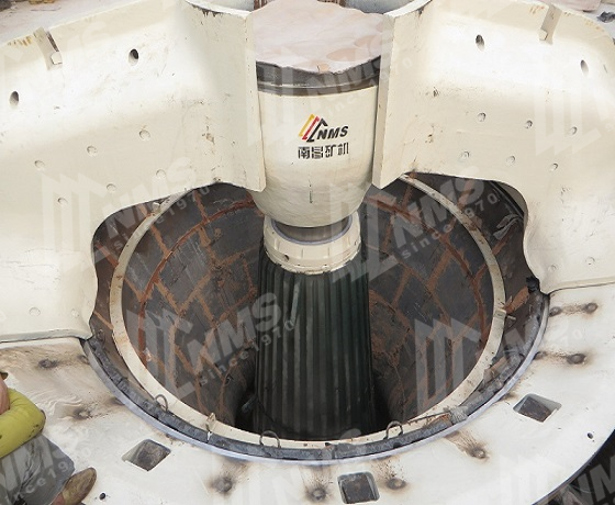 主軸和動(dòng)錐采取一體式結(jié)構(gòu)設(shè)計(jì),避免破碎過(guò)程中出現(xiàn)動(dòng)錐松動(dòng)