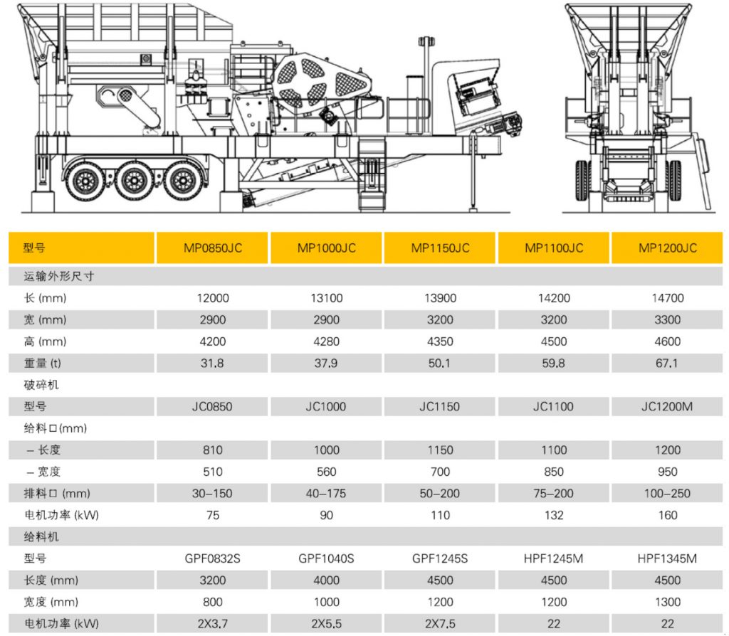 MP-JC系列輪胎移動顎式破碎站適用于礦山、骨料加工、建筑垃圾回收等領(lǐng)域的粗碎作業(yè)。